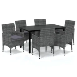 Juego Muebles Jardín 7 Pzas Con Cojines Ratán Sintético Gris VidaXL