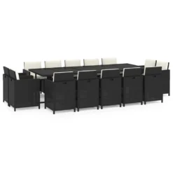 Set Comedor De Jardín 15 Pzas Con Cojines Ratán Sintético Negro VidaXL