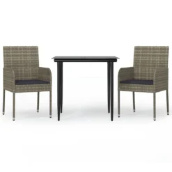 Set De Bistró Jardín 3 Pzs Ratán Sintético Vidrio Templado Gris VidaXL