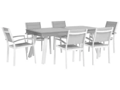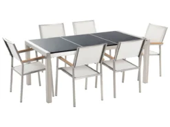 Conjunto De Jardín Mesa Con Tablero Negro De Piedra Natural 180 Cm, 6 Sillas De Tela Blanca GROSSETO