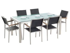 Conjunto De Jardín Mesa En Vidrio 180 Cm, 6 Sillas Negras GROSSETO