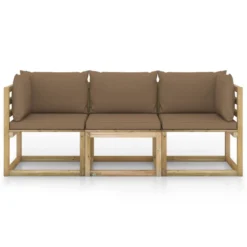 Sofá De Jardín De 3 Plazas Con Cojines Madera Impregnada Gris VidaXL
