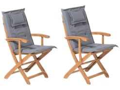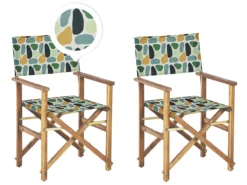 Conjunto De 2 Sillas De Jardín Madera Clara/blanco Crema Con Tela Blanco/naranja/verde CINE
