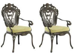 Conjunto De 2 Sillas De Jardín Madera Oscura/blanco Crema Con Tela Verde/blanco/rosa CINE
