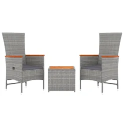 Juego Muebles Jardín 3 Pzas Madera Acacia Ratán Sintético Gris VidaXL