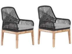 Conjunto De 2 Sillas De Jardín Negro/madera Clara/gris Claro OLBIA