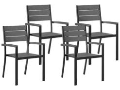 Conjunto De 4 Sillas De Jardín De Metal Negro/gris/madera Clara TAVIANO