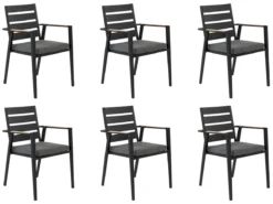Conjunto De 6 Sillas De Jardín De Metal Negro/gris/madera Clara TAVIANO