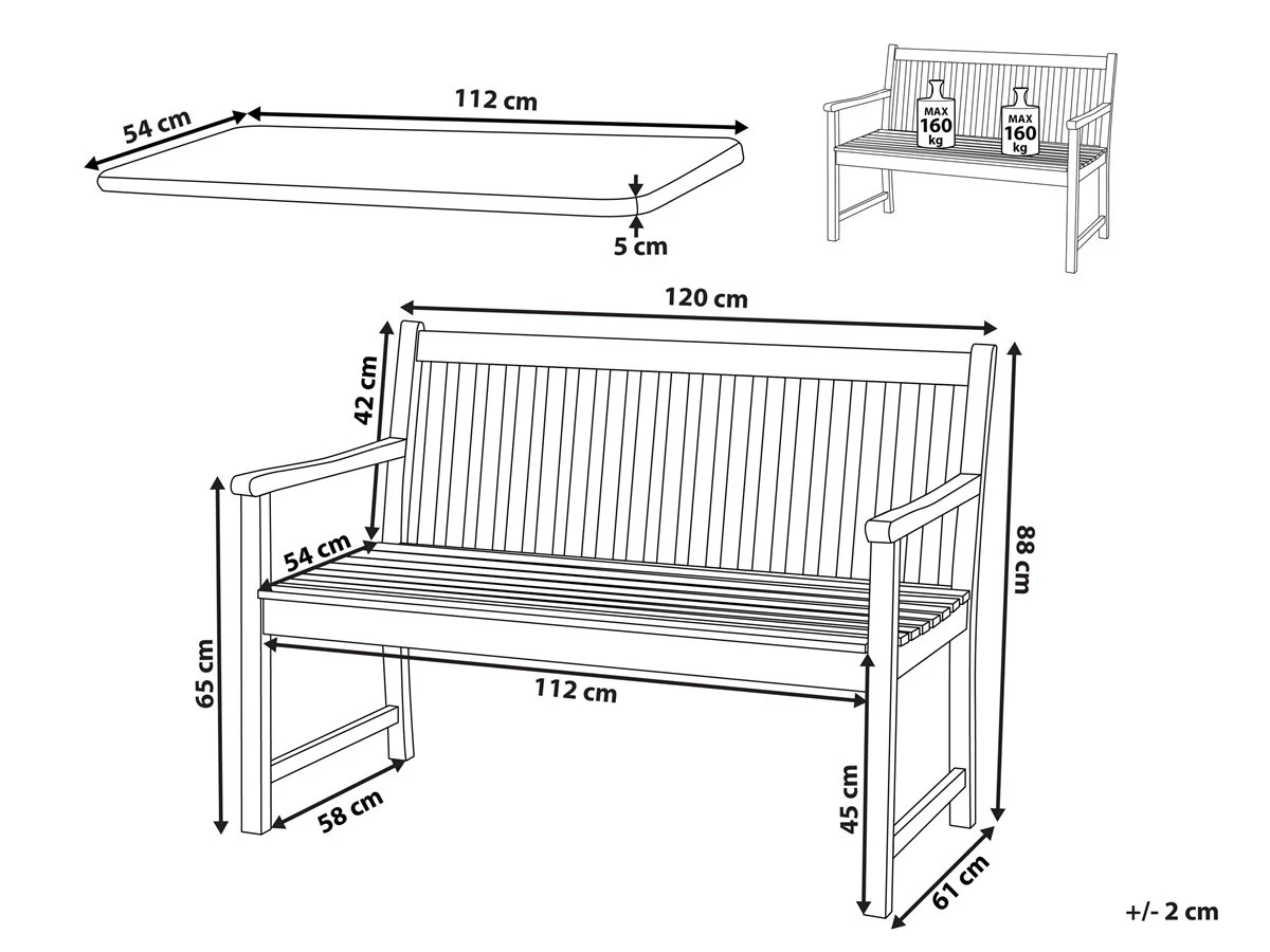 Banco De Jardín De Madera Con Cojín Terracota 120 Cm VIVARA