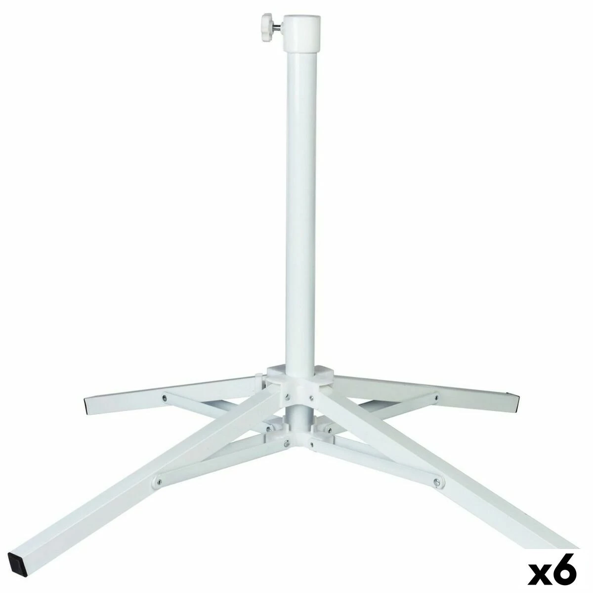 Coloca tu parasol cómodamente donde quieras con este pie de 4 patas regulables. Es de color blanco y compatible con parasoles entre 25 y 32 mm de diámetro gracias a la rosca ajustable que incorpora. La pieza es plegable para ocupar menos espacio cuando no se usa. Cerrada tiene unas medidas de 10x10x54 cm y abierta de 65x65x60 cm. Pesa 1545 Kg aproximadamente. Disfruta del exterior con Aktive.