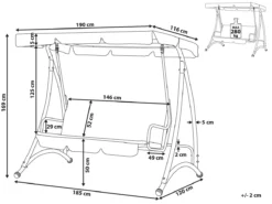 Excelente columpio de jardín. El columpio de jardín acentúa su diseño clásico con el color gris. El dosel ajustable proporciona una amplia sombra contra el sol. El asiento y el respaldo están elaborados con poliéster de alta calidad en tono gris. El marco de acero con revestimiento en polvo es elaborado a mano y es resistente a la intemperie. El columpio de jardín será su lugar favorito para relajarse durante todo el verano! Detalles: Tipo de Producto: Columpio Estilo: Moderno Color: Gris Tonalidad: Gris oscuro Tipo de material: Acero Material principal: Poliéster Material adicional: Acero Composición del Material: 100% Poliéster Acabado: Revestimiento en polvo Dimensiones: Altura del apoyabrazos: 29 cm Profundidad: 120 cm Espesor del asiento: 3 cm Altura del asiento: 50 cm Ancho: 190 cm Altura: 169 cm Superficie del asiento: 146×49 cm Peso: 36 kg Capacidad de peso: 280 kg La oferta incluye: 1 x Columpio Ventajas: Altura del toldo ajustable, Las tiras ofrecen una fijación segura, Perfecto para todo tipo de exterior, Construcción muy estable, Materiales de la más alta calidad Información de montaje: Requiere montaje completo. Más de 60 min. Texto de resistencia: Gracias a su resistencia al agua, puedes utilizar el producto al aire libre y dejarlo a la intemperie durante lluvias ligeras. Si no es posible guardarlo en un lugar cerrado y protegido, recomendamos utilizar una funda protectora. La exposición prolongada a la humedad puede provocar daños en el mueble. Resistencia: Agua ligera / humedad Consejos de mantenimiento: Poliéster: 1.Aspire con un accesorio adecuado 2.Limpiar con champú seco y una esponja húmeda o un limpiador suave 3.Cuando no esté en uso, manténgalo en un lugar limpio y seco para protegerlo de las condiciones atmosféricas. Acero: 1.Quite las tapas protectoras con regularidad para que salga todo el líquido, déjelas secar y utilice un spray anticorrosión si es necesario 2.Limpiar con detergentes suaves 3.Los muebles de acero y sus elementos no deben exponerse al agua. De lo contrario, existe la posibilidad de que el agua oxidada salga de las tuberías del marco 4.Cuando no estén en uso, los muebles deben guardarse en el interior o bajo una cubierta protectora 5.Para aumentar la durabilidad del artículo, manténgalo seco y recuerde la limpieza regular 6.Cualquier daño a la capa de pintura exterior debe protegerse de la humedad 7.Para garantizar la protección contra la corrosión, evite los limpiadores alcalinos o ácidos. Después de limpiar, secar bien.