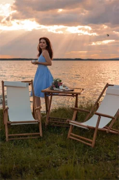 Conjunto de 2 tumbonas de jardín de madera clara. Añade a tu zona exterior este conjunto de 2 tumbonas de jardín. Está fabricado a partir de poliéster resistente a los rayos UV y madera de bambú duradera. El respaldo presenta 3 posiciones de reclinación. Es plegable, lo que permite ahorrar espacio. Detalles: Tipo de Producto: Tumbona Estilo: Boho Color: Madera clara Color del marco: Madera clara Tonalidad: Blanco crema Tipo de material: Madera maciza Material principal: Poliéster Composición del Material: 100% Poliéster Respaldo ajustable: Sí Partes ajustables: Respaldo Apoyabrazo: No Acabado: Natural Plegable: Sí Dimensiones: Altura del apoyabrazos: 51 cm Profundidad: 97-101 cm Altura del asiento: 30 cm Ancho: 60 cm Altura: 66-90 cm Peso: 8 kg Capacidad de peso: 150 kg La oferta incluye: 2 x Tumbona de exterior Ventajas: Respaldo ajustable en 3 posiciones, Los nudos y vetas de madera natural hacen que cada pieza sea única, Solida estructura, Resistencia UV 6 (ISO 105-B02, Plegable, ahorra espacio Información de montaje: No requiere montaje Información adicional: Ten en cuenta que el producto es sensible a condiciones climáticas adversas, por lo que, cuando no esté en uso, debe ser almacenado en el interior o en un lugar cubierto. Texto de resistencia: El producto está hecho con tela resistente a los rayos UV, lo que significa que se puede usar bajo la luz del sol sin preocuparse por la pérdida de color. En cualquier caso, es recomendable colocar los muebles debajo de una cubierta impermeable cuando no se utilicen, para asegurar su máxima durabilidad. Resistencia: Rayos UV Consejos de mantenimiento: Madera de bambú: 1.Antes del inicio o final de la temporada, pon un poco de sellador. Solo en lugares con sombra, que no estén ni húmedos ni mojados. Si las condiciones climatológicas son adversas, usa una funda protectora o guarda el mueble en el interior 2.Después de limpiar, frota con una esponja. Por último, seca con una toalla y añade a la madera una capa de cera o aceite 3.Trata las zonas enmohecidas de los muebles con aceite de limón 4.Con el paso del tiempo, la suciedad se puede acumular en la madera de bambú. Asegúrate de realizar una limpieza anual a fondo. Utiliza un cepillo suave y agua tibia con jabón neutro. Poliéster: 1.Cuando no esté en uso, manténgalo en un lugar limpio y seco para protegerlo de las condiciones atmosféricas 2.No secar en secadora y no planchar 3.Lavar a mano o seleccionar un ciclo de lavado de lana (30 ° C, a menos que el fabricante especifique lo contrario. Lavar del revés con la cremallera cerrada.