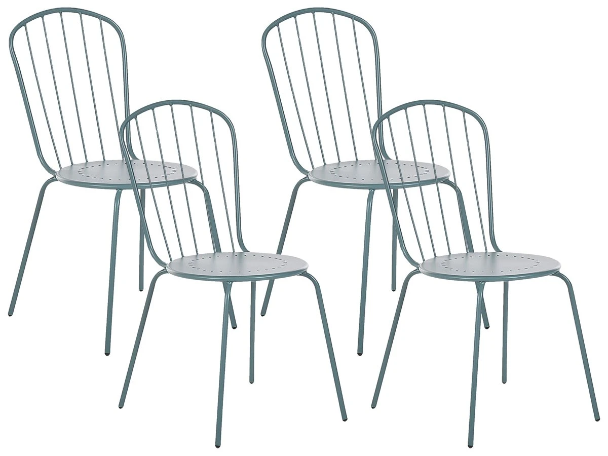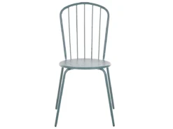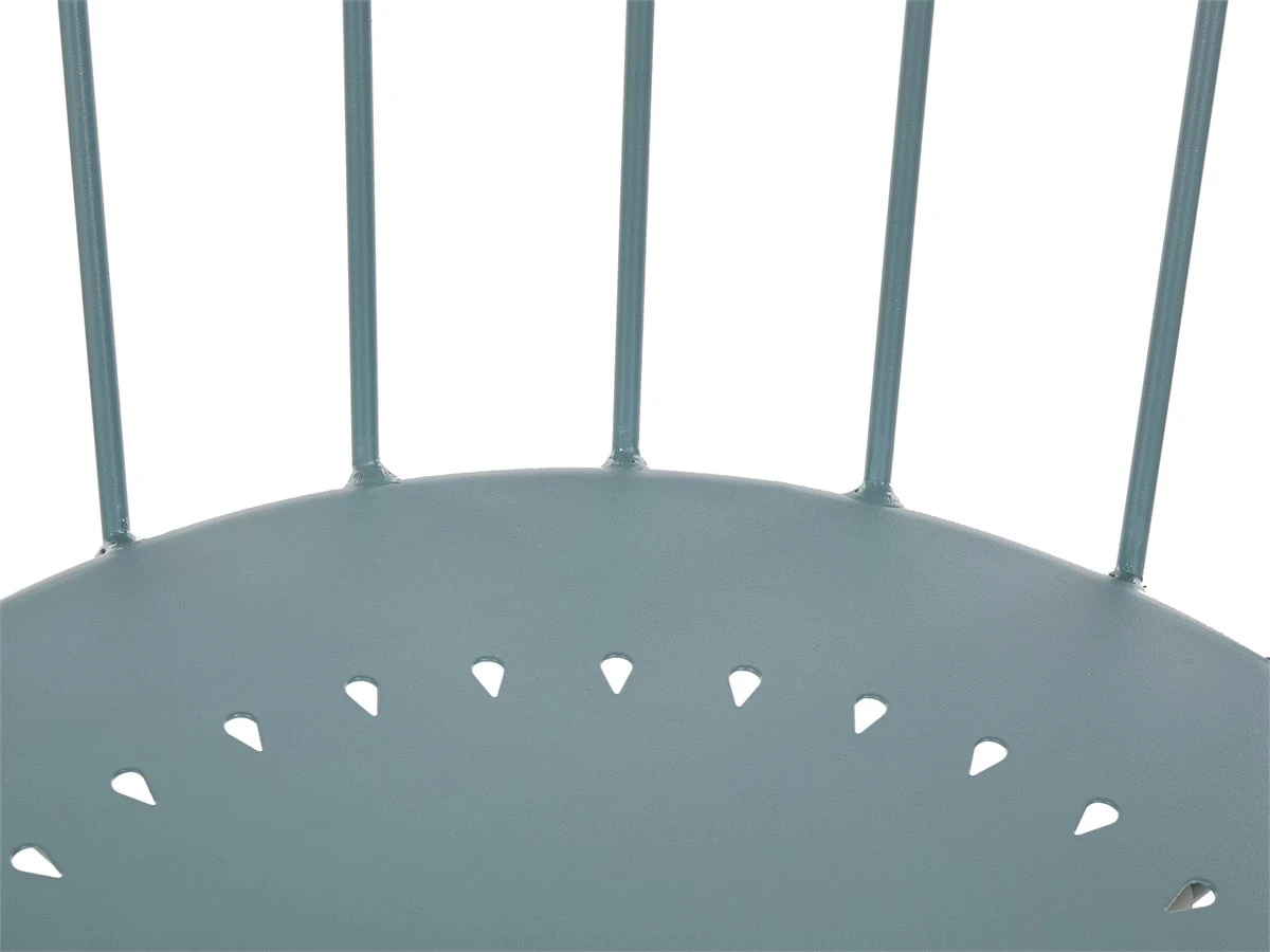 Juego de sillas de jardín. Este conjunto de 4 sillas de jardín es ideal para cualquier espacio al aire libre. Está fabricado a partir de metal resistente a condiciones climáticas adversas, al óxido y al uso intensivo. El diseño simple hace que el juego se adapte a muchos estilos. Detalles: Tipo de Producto: Silla de jardín Estilo: Moderno Color: Azul Tonalidad: Azul claro Tipo de material: Acero Material principal: Acero Material de las patas: Acero Material del asiento: Acero Apoyabrazo: No Acabado: Mate Plegable: No Apilable: No Dimensiones: Profundidad: 47 cm Altura del asiento: 43 cm Ancho: 40 cm Altura: 89 cm Superficie del asiento: 40×40 cm Peso: 4 kg Capacidad de peso: 120 kg La oferta incluye: 4 x Silla Ventajas: Respaldo alto y asiento muy cómodo, Perfecto para todo tipo de exterior, Robusto marco resistente a la corrosión, Ideal para uso en interiores y exteriores, Patas con tapas antideslizantes de seguridad Información de montaje: No requiere montaje Texto de resistencia: Gracias al acabado especial, la superficie del producto es resistente a la oxidación. Esto significa que se puede utilizar en exteriores. Cuando el producto no esté en uso, se recomienda cubrirlo con una cubierta o colocarlo en un lugar seco. Resistencia: Intemperie Consejos de mantenimiento: Acero: 1.Los muebles de acero y sus elementos no deben exponerse al agua. De lo contrario, existe la posibilidad de que el agua oxidada salga de las tuberías del marco 2.Cuando no estén en uso, los muebles deben guardarse en el interior o bajo una cubierta protectora 3.Para aumentar la durabilidad del artículo, manténgalo seco y recuerde la limpieza regular 4.Cualquier daño a la capa de pintura exterior debe protegerse de la humedad 5.Para garantizar la protección contra la corrosión, evite los limpiadores alcalinos o ácidos. Después de limpiar, secar bien 6.Quite las tapas protectoras con regularidad para que salga todo el líquido, déjelas secar y utilice un spray anticorrosión si es necesario 7.Limpiar con detergentes suaves.