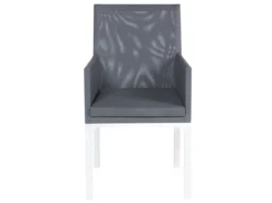 Juego de sillas de jardín. Este conjunto de 4 sillas de jardín de estilo clásico combina bien con cualquier decoración exterior. Está fabricado a partir de tela de poliéster resistente a los rayo UV. Los reposabrazos empotrados y el respaldo alto ofrecen comodidad. Los cojines gruesos vienen con una funda impermeable. Detalles: Tipo de Producto: Silla de jardín Estilo: Moderno Color: Gris Tonalidad: Gris oscuro Tipo de material: Tejido Material principal: Poliéster Material adicional: Aluminio Material de las patas: Metal Material del asiento: Tejido Composición del Material: 100% Poliéster Apoyabrazo: Sí Acabado: Revestimiento en polvo Plegable: No Apilable: No Dimensiones: Altura del apoyabrazos: 64 cm Profundidad: 62 cm Espesor del asiento: 5 cm Altura del asiento: 46 cm Ancho: 52 cm Altura: 91 cm Superficie del asiento: 45×45 cm Peso: 6 kg Capacidad de peso: 130 kg La oferta incluye: 4 x Silla Ventajas: Anchos repozabrazos y respaldo acogedor, Diseño tradicional con un toque moderno, Robusto marco resistente a la corrosión, Ideal para uso al aire libre, Resistencia UV 5 (ISO 105-B02 Información de montaje: Requiere montaje de las patas. Más de 60 min. Información adicional: Para una mayor estabilidad y seguridad de uso, se recomienda verificar 2 semanas después de la instalación que el montaje del producto ha sido realizado de forma correcta. Revisa, al menos una vez cada 3 meses, que los tornillos estén bien apretados. Texto de resistencia: El producto es resistente al agua, lo que significa que no se dañará expuesto a la lluvia o en contacto con otros líquidos. Puede dejarlo al aire libre incluso durante fuertes lluvias o humedad. Durante la temporada de invierno es recomendable almacenar el producto en el interior o bajo una cubierta impermeable. Resistencia: Agua Consejos de mantenimiento: Aluminio: 1.Fuera de temporada, utilice una funda protectora o guarde los muebles en un lugar fresco y seco 2.Limpiar con agua jabonosa y detergentes suaves. Quitar el polvo con un paño suave. Poliéster: 1.El material es extremadamente resistente a la intemperie. Sin embargo, se recomienda utilizar una funda protectora para la temporada de invierno o, si es posible, guardar los muebles en un lugar fresco y seco 2.Manténgalo alejado de fuentes de calor, como parrilla o fuego, ya que las chispas pueden causar daños graves. No coloque utensilios calientes directamente sobre la superficie, 3.Limpiar con un limpiador a base de jabón suave y un paño suave