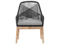 Set de jardín mesa con 4 sillas. Mejora la decoración de tu exterior con este conjunto de jardín constituido por una mesa y 4 sillas. Todos los elementos del juego están fabricados a partir de materiales resistentes a la intemperie. El tablero está hecho de cemento reforzado de fácil mantenimiento mientras que los muebles, de madera maciza de acacia que resalta el aspecto minimalista y moderno del conjunto. Cada silla incluye un cojín a juego para mayor comodidad. La combinación de colores hace que los muebles destaquen y mejoren cualquier decoración. Detalles: Tipo de Producto: Conjunto de comedor Estilo: Moderno Color: Gris Tonalidad: Gris claro Tipo de material: Cemento Material principal: Cemento reforzado con fibra Material adicional: Madera de acacia Material de la superficie: Cemento Composición del Material: 100% Poliéster Acabado: Laminado Densidad de espuma del asiento: 20 kg/m3 Dimensiones: Dimensiones de la silla: 64x71x89 cm Espesor del asiento: 5 cm Altura del asiento: 48 cm Dimensiones de la mesa: 90x90x76 cm Peso: 77 kg Capacidad de peso de la silla: 150 kg Capacidad de peso de la mesa: 150 kg La oferta incluye: 4 x Silla, 1 x Mesa, 4 x Cojín del asiento Ventajas: Perfecto para cenar en grupos más grandes, Perfecto para todo tipo de exterior, Acabado de hormigón para aspecto industrial, Materiales de la más alta calidad, Ideal para uso en interiores y exteriores, Cojines extraíbles para un fácil mantenimiento Información de montaje: Requiere montaje completo. Más de 60 min. Información adicional: Dependiendo de la humedad del aire, los muebles de concreto pueden tener grietas, agujeros o cambiar de color. Es una característica natural del material y no afecta su calidad. El producto viene con un libro de cuidados detallado para ayudarte a mantener tus muebles en las mejores condiciones durante muchos años. Consulta estos consejos para garantizar el mantenimiento adecuado de tus muebles nuevos – encontrarás las instrucciones de mantenimiento junto con el manual de montaje. Texto de resistencia: Gracias a su resistencia al agua, puedes utilizar el producto al aire libre y dejarlo a la intemperie durante lluvias ligeras. Si no es posible guardarlo en un lugar cerrado y protegido, recomendamos utilizar una funda protectora. La exposición prolongada a la humedad puede provocar daños en el mueble. Resistencia: Agua ligera / humedad Consejos de mantenimiento: Cemento reforzado con fibra: 1.Durante el invierno utilice una funda protectora o guarde los muebles en el interior 2.Para evitar manchas, no utilice detergentes cremosos o detergentes con ácidos o aceites. Madera de acacia: 1.Durante el invierno o en condiciones climáticas adversas, utilice una funda protectora o guarde los muebles en el interior 2.Los muebles con acabado de aceite deben volverse a engrasar antes de ponerlos en uso y al menos una vez al año, especialmente en el clima húmedo 3.Limpiar con un limpiador suave y un paño suave en la dirección de la veta. Secar con un paño inmediatamente después de limpiar. Material sintético: 1.El material es extremadamente resistente a la intemperie. Sin embargo, se recomienda utilizar una funda protectora para la temporada de invierno o, si es posible, guardar los muebles en un lugar fresco y seco 2.Manténgalo alejado de fuentes de calor, como parrilla o fuego, ya que las chispas pueden causar daños graves. No coloque utensilios calientes directamente sobre la superficie, 3.Limpiar con un limpiador a base de jabón suave y un paño suave