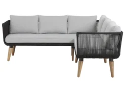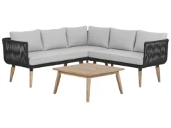 Moderno conjunto de jardín. Añade a tu zona exterior este conjunto de sala de estar para jardín. Los reposabrazos y los cojines de asiento acolchado del sofá ofrecen la máxima comodidad. La mesa de madera de acacia de acabado natural aporta un toque rústico al estilo. Combina bien con un cualquier espacio al aire libre de diseño tradicional, contemporáneo o minimalista. Detalles: Tipo de Producto: Conjunto de jardín Estilo: Moderno Color: Gris Tonalidad: Gris pardo Tipo de material: Madera maciza Material principal: Madera de acacia Material adicional: Acero Composición del Material: 100% Poliéster Forma: Forma de L Acabado: Cepillado Densidad de espuma del asiento: 18 kg/m3 Dimensiones: Dimensiones del sofá de 2 plazas: 75x122x75 Dimensiones del sofá de 3 plazas: 75x198x75 Dimensiones de la mesa de centro: 74x74x40 Espesor del asiento: 10 cm Altura del asiento: 47 cm Dimensiones totales: 211x200x75 Peso: 60 kg Capacidad de peso de la mesa: 60 kg Capacidad de peso por persona: 130 kg La oferta incluye: 1 x Mesa de centro, 1 x Sofá esquinero Ventajas: Confort del asiento óptimo, Diseño atemporal, Solida estructura, Detalles perfectos, Resistencia UV 5 (ISO 105-B02, Ideal para uso en interiores y exteriores, Fundas de cojines con costuras ocultas y cremalleras Información de montaje: Requiere montaje parcial. Más de 60 min. Información adicional: El producto viene con un libro de cuidados detallado para ayudarte a mantener tus muebles en las mejores condiciones durante muchos años. Consulta estos consejos para garantizar el mantenimiento adecuado de tus muebles nuevos – encontrarás las instrucciones de mantenimiento junto con el manual de montaje. Texto de resistencia: Los muebles resistentes a los rayos UV muestran una mayor resistencia a la decoloración. Sin embargo, recomendamos que el producto se guarde en el interior cuando no esté en uso. Esto asegurará la máxima durabilidad de los muebles. Resistencia: Rayos UV Consejos de mantenimiento: Madera de acacia: 1.Limpiar con un limpiador suave y un paño suave en la dirección de la veta. Secar con un paño inmediatamente después de limpiar 2.Durante el invierno o en condiciones climáticas adversas, utilice una funda protectora o guarde los muebles en el interior 3.Los muebles con acabado de aceite deben volverse a engrasar antes de ponerlos en uso y al menos una vez al año, especialmente en el clima húmedo. Poliéster: 1.No secar en secadora ni planchar 2.Lavar a mano únicamente, usar agua fría y un detergente suave 3.Cuando no esté en uso, manténgalo en un lugar limpio y seco para protegerlo de las condiciones atmosféricas. Aluminio: 1.Fuera de temporada, utilice una funda protectora o guarde los muebles en un lugar fresco y seco 2.Limpiar con agua jabonosa y detergentes suaves. Quitar el polvo con un paño suave.