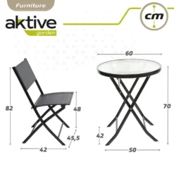 - Conjunto de muebles plegables para terraza y balcón compuesto por 2 sillas color antracita y 1 mesa redonda central Aktive Garden