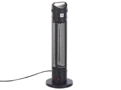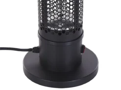 Calentador de exterior. Esta estufa eléctrica de exterior es ideal para las tardes frías de reunión en el patio. Al calentar mediante radiación infrarroja, no daña el medio ambiente. Este calefactor de torre no requiere montaje y se puede mover de un lugar a otro con facilidad. Detalles: Tipo de Producto: Estufa de patio Color: Negro Tipo de material: Metal Material principal: Aluminio Material adicional: Material sintético Código de protección IP: IP 44 (Impermeable Consumo de potencia: 1000 W Montaje: Independiente Dimensiones: Longitud del cable: 185 cm Profundidad: 20 cm Ancho: 20 cm Altura: 62 cm Peso: 4 kg La oferta incluye: 1 x Estufa de exterior Ventajas: Función antivuelco para mayor seguridad, Perfecto para todo tipo de exterior, Cumple con los estándares PAH, RoHS y SAA, Certificados GS, CE, CB, Ideal para uso en interiores y exteriores Información de montaje: Requiere montaje parcial. 20-40 min. Información adicional: La estufa requiere hasta 5 minutos para alcanzar su máxima potencia de calentamiento, Distancia mínima de la pared: 100 cm, La distancia óptima de calentamiento es de 2 metros. Aunque se puede sentir el calor a mayor distancia, se recomienda colocar el dispositivo lo más cerca posible y así aprovechar al máximo su potencial. Consejos de mantenimiento: Aluminio: 1.No meter en el agua 2.Antes de comenzar a limpiar, desconecta el enchufe. No toques la estufa cuando esté caliente o no se haya enfriado por completo 3.Limpiar con un paño húmedo