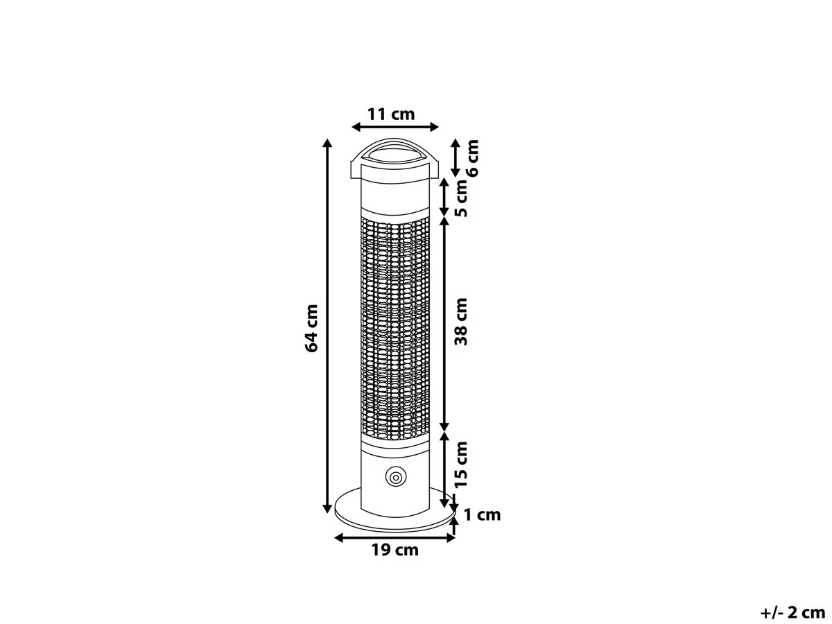 Disfruta del aire libre con la estufa de jardín . Manténgase cálido durante las fiestas de celebración con el calentador eléctrico. El elegante diseño hace que combine con cualquier decoración al aire libre. Fácil de transportar gracias a la forma funcional. Añade un toque de calidez a su espacio de entretenimiento al aire libre con la estufa de jardín. Detalles: Tipo de Producto: Estufa de patio Color: Negro Tipo de material: Metal Material principal: Aluminio Conexión / Terminal: 13 A Código de protección IP: IP 55 (anti polvo y humedad Consumo de potencia: 800 W Montaje: Independiente Dimensiones: Longitud del cable: 180 cm Profundidad: 19 cm Ancho: 19 cm Altura: 64 cm Peso: 4 kg La oferta incluye: 1 x Estufa de exterior Ventajas: Crea un ambiente acogedor, Brinda un toque acogedor a cualquier espacio, Materiales pensados para el uso en el exterior, Cumple con los estándares PAH, RoHS y SAA, Certificados GS, CE, CB, Rápido y fácil de usar Información de montaje: Requiere montaje parcial. 5-15 min. Información adicional: La estufa requiere hasta 5 minutos para alcanzar su máxima potencia de calentamiento, Distancia mínima de la pared: 100 cm, La distancia óptima de calentamiento es de 2 metros. Aunque se puede sentir el calor a mayor distancia, se recomienda colocar el dispositivo lo más cerca posible y así aprovechar al máximo su potencial. Consejos de mantenimiento: Aluminio: 1.No meter en el agua 2.Antes de comenzar a limpiar, desconecta el enchufe. No toques la estufa cuando esté caliente o no se haya enfriado por completo 3.Limpiar con un paño húmedo