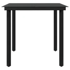 ¡Este juego de comedor para jardín es una excelente opción para cenar o relajarse en el espacio al aire libre de tu casa! Las estructuras de acero con recubrimiento en polvo hacen que la mesa y las sillas sean robustas y estables para usar a diario en exteriores. Gracias al ratán PE resistente al agua, las sillas son fáciles de limpiar y adecuadas para el uso diario. Asimismo, la lisa superficie de vidrio se limpia fácilmente con un paño húmedo y es perfecta para colocar comida, bebida y otros artículos decorativos. Nota: Para prolongar la vida de tus muebles de exterior, te recomendamos que los protejas con una funda impermeable. Color: NegroMaterial: Ratán PE, acero con revestimiento en polvo, vidrio, madera maciza de acaciaDimensiones de la mesa: 80 x 80 x 74 cm (largo x ancho x altoDimensiones de la silla: 52 x 57 x 84 cm (ancho x profundo x altoAncho del asiento: 39/44.5 cmProfundidad del asiento: 46 cmAltura del reposabrazos desde el suelo: 62/65 cmGrosor del cojín del asiento: 4 cmRequiere montaje: SíLa entrega contiene:1 x Mesa4 x Silla4 x Cojín