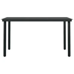Este moderno juego de muebles de comedor, con un diseño elegante y líneas pulcras, es una opción excelente para el jardín, el patio, la terraza, la cocina e incluso el comedor. La sencilla elegancia de este conjunto de comedor hace que la comida del día a día resulte especial. Este juego de comedor de jardín cuenta con una estructura de acero con recubrimiento en polvo, lo que hace que la mesa y las sillas sean estables y duraderas. El respaldo y el asiento están hechos de cuerda de algodón trenzado, que resulta suave al tacto y resistente para un uso prolongado. Asimismo, la mesa posee una superficie de vidrio templado, que se limpia fácilmente con un paño húmedo y que es perfecta para colocar comida, bebida y otros artículos decorativos. Nota: Para alargar la vida de tus muebles de exterior, te recomendamos limpiarlos regularmente y no dejarlos al aire libre sin protección innecesariamente.Limpieza: Usa una solución de jabón suaveAlmacenamiento: Si es posible, guárdala en un lugar fresco y seco en el interior. Si el producto se almacena en el exterior, protégelo con una cubierta impermeable. Limpia y seca el exceso de agua o nieve de las superficies planas después de una lluvia o nevada. Permite la ventilación para evitar daños relacionados con la humedad. Mesa:Color: NegroMaterial: Acero con recubrimiento en polvo, vidrioDimensiones: 140 x 70 x 74 cm (largo x ancho x altoSilla:Color: NegroMaterial: Cuerda de algodón, aceroDimensiones: 56 x 53,5 x 85,5 cm (ancho x profundo x altoAncho del asiento: 46 cmProfundidad del asiento: 42 cmAltura del asiento desde el suelo: 43 cmAltura del reposabrazos desde el suelo: 63,5 cmRequiere montaje: SíLa entrega contiene:1 x Mesa4 x Sillas