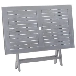 Este práctico y a la vez elegante conjunto de comedor de jardín de madera es perfectamente adecuado para usarlo al aire libre y será el foco de atención de tu jardín, terraza o patio. Tanto la mesa como las sillas están hechas de madera maciza de acacia con un acabado gris deslavado. Son resistentes a la intemperie, duraderas y fáciles de limpiar con un simple paño húmedo. La robusta estructura de madera hace que este conjunto sea muy estable y seguro. Y además te ofrece todo el confort y es muy práctico para pasar tiempo en él con tu familia y amigos. Además, la mesa y las sillas son plegables para que puedas transportarlas y guardarlas fácilmente si no las usas. La entrega incluye 1 mesa de comedor y 4 sillas de comedor. Color: GrisMaterial: Madera maciza de acacia con un acabado gris deslavadoDimensiones de la mesa: 120 x 70 x 75 cm (largo x ancho x altoDimensiones silla (con reposabrazos: 54 x 57 x 91 cm (ancho x profundo x altoDiseño plegable para un fácil almacenamiento o transporteEl envío incluye 1 mesa con 4 sillas plegables