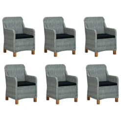 ¡Crea una estética atractiva y cohesionada en el espacio al aire libre de tu casa con este juego de comedor para jardín! La mesa de comedor está hecha de madera maciza de acacia con un acabado al aceite, por lo que es estable, duradera y fácil de mantener. La silla de exterior, con una estructura de acero con recubrimiento en polvo cubierta de ratán sintético redondo, es robusta y fácil de limpiar. Los cojines bien acolchados añaden un plus de comodidad en tu tiempo de descanso. La funda del cojín está equipada con una cremallera, es extraíble y lavable. Además, las patas de madera maciza de acacia refuerza su solidez y estabilidad. Estas sillas de jardín son fáciles de mover gracias a su construcción ligera. Nota importante: Recomendamos cubrir el set de comedor en caso de lluvia, nieve y heladas para que sea más duradero. Mesa:Material: Madera maciza de acacia con acabado de aceite Dimensiones: 206 x 100 x 74 cm (largo x ancho x altoSilla:Color: Gris claroColor del cojín: NegroMaterial: Ratán PE redondo, madera maciza de acacia, acero con recubrimiento en polvoMaterial del cojín: Funda 100% poliéster con relleno de espumaDimensiones totales: 62 x 65 x 92 cm (ancho x profundo x altoAnchura de asiento: 54 cmProfundidad del asiento: 49 cmAltura del asiento desde el suelo: 41 cmAltura del reposabrazos desde el suelo: 64 cmGrosor del cojín del asiento: 6 cmRequiere montaje: SíLa entrega incluye:1 x Mesa6 x Sillas6 x Cojines de asiento