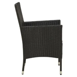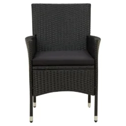 Con un diseño elegante y una estructura de acero duradero, este juego de muebles de comedor es la opción perfecta para tu espacio al aire libre. Este juego de comedor de jardín cuenta con una estructura de acero con recubrimiento en polvo, lo que hace que la mesa y las sillas sean estables y duraderas. Gracias al ratán PE resistente a la intemperie, el conjunto de muebles de exterior es fácil de limpiar. Los cojines son extraíbles y fáciles de limpiar. Además, los cojines gruesos añaden comodidad adicional al asiento. Además, los gruesos cojines añaden mayor comodidad a los asientos. Nota: Para prolongar la vida de tus muebles de exterior, te recomendamos que los protejas con una funda impermeable. Mesa:Color: NegroMaterial: Ratán sintético, acero con recubrimiento en polvo, madera maciza de acaciaDimensiones: 250 x 100 x 75 cm (largo x ancho x altoSilla:Color del ratán sintético: NegroColor del cojín: NegroMaterial: Ratán sintético, acero con recubrimiento en polvo, tela (100% poliésterDimensiones: 61 x 60 x 88 cm (ancho x profundo x altoRequiere montaje: SíLa entrega contiene:1 x Mesa8 x Silla8 x Cojines