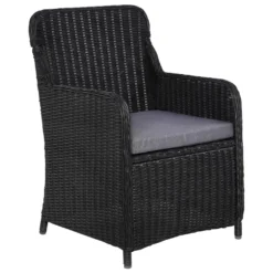 ¡Crea una estética atractiva y cohesionada en el espacio al aire libre de tu casa con este juego de comedor para jardín! Esta mesa de exterior está hecha de madera maciza de acacia, lo que la hace robusta y estable. La superficie con acabado de aceite también facilita la limpieza de la mesa con un paño húmedo. Además, las patas curvas contribuyen a su elegante diseño. Con una estructura de acero cubierto con ratán PE resistente a la intemperie, estas sillas de comedor son robustas y fáciles de limpiar. Cada asiento viene con un cojín acolchado grueso para agregar comodidad en tu tiempo de descanso. Nota: Para prolongar la vida útil de los muebles de exterior, te recomendamos que los limpies con regularidad y no los dejes al aire libre sin protección innecesariamente.Limpieza: Usar una solución de jabón suaveAlmacenamiento: Si es posible, guarda el producto en un lugar fresco y seco en el interior. Si el producto se almacena al aire libre, protégelo con una funda impermeable. Limpia y seca el exceso de agua o nieve de las superficies planas después de una lluvia o nevada. Permite la ventilación para evitar daños relacionados con la humedad. Mesa:Material: Madera maciza de acacia con acabado de aceite Dimensiones: 85 x 85 x 75 cm (largo x ancho x altoGrosor de la superficie: 2 cmSilla:Color del ratán sintético: NegroColor del asiento: Gris oscuroMaterial: Ratán PE, acero con recubrimiento en polvo, tela (100% poliésterDimensiones de la silla: 64 x 65 x 90 cm (ancho x profundo x altoAnchura de asiento: 54 cmProfundidad del asiento: 49 cmAltura del asiento desde el suelo (sin cojín: 41 cmAltura del reposabrazos desde el suelo: 65,5 cmRequiere montaje: SíLa entrega incluye:1 x Mesa2 x Sillas2 x Cojines de asiento