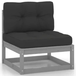 Este juego de muebles de jardín es una excelente opción para relajarte y disfrutar del buen tiempo, echar una siesta o charlar con tu familia o amigos. El conjunto de jardín está hecho de madera maciza de pino, lo que lo hace robusto y estable. ¡Puedes combinarlo con otros segmentos modulares para crear tus propias configuraciones de set de salón de jardín personal! Nota: Para prolongar la vida de tus muebles de exterior, te recomendamos que los protejas con una funda impermeable. Color: GrisColor de cojín: Gris antracita oscuroMaterial: Madera maciza de pino, tela (100% poliésterDimensiones del sofá medio/esquinero: 70 x 70 x 67 cm (ancho x profundo x altoDimensiones: 70 x 70 x 30 cm (ancho x profundo x altoDimensiones del cojín del asiento: 70 x 70 x 8 cm (largo x ancho x grosorDimensiones del cojín de respaldo/lateral: 70 x 40 x 8 cm (largo x ancho x grosorRequiere montaje: SíLa entrega contiene:6 x Sofás centrales3 x Sofás esquineros1 x Mesa9 x Cojín de asiento12 x Cojines trasero/lateral