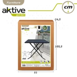 Mesa cuadrada plegable de jardín de Aktive Garden. Fabricada de metal, con estructura resistente a las inclemencias del tiempo. Perfecta para uso exterior e interior. Es ligera y se pliega de forma compacta y sencilla gracias al asa inferior incorporada que también permite transportarla con facilidad. La mesa mide son 70 cm de ancho, 50 cm de largo y 70 cm de alto, ideal para 2 personas. Soporta un peso máximo de 75 kg. ¡Disfruta del exterior con Aktive!