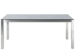Mesa de exterior. Añade elegancia a tu zona exterior con esta mesa de comedor. Está fabricada a partir de acero inoxidable duradero y vidrio templado. Tiene una capacidad para 6 personas. La combinación de materiales de alta calidad y el diseño elegante aportan un estilo definido. Detalles: Tipo de Producto: Mesa de comedor Estilo: Moderno Color: Negro Tipo de material: Vidrio Material principal: Vidrio templado Material de la superficie: Vidrio Forma: Rectangular Acabado: Brillante Dimensiones: Ancho: 90 cm Longitud: 180 cm Altura: 76 cm Peso: 66 kg Capacidad de peso: 70 kg La oferta incluye: 1 x Mesa Ventajas: Tablero grueso de vidrio templado resistente, Perfecto para todo tipo de exterior, Diseño atemporal, Materiales reciclables y ecológicos, Montaje muy sencillo Información de montaje: Requiere montaje completo. 20-40 min. Información adicional: El producto viene con un libro de cuidados detallado para ayudarte a mantener tus muebles en las mejores condiciones durante muchos años. Consulta estos consejos para garantizar el mantenimiento adecuado de tus muebles nuevos – encontrarás las instrucciones de mantenimiento junto con el manual de montaje. Texto de resistencia: El producto es resistente al agua, lo que significa que no se dañará expuesto a la lluvia o en contacto con otros líquidos. Puede dejarlo al aire libre incluso durante fuertes lluvias o humedad. Durante la temporada de invierno es recomendable almacenar el producto en el interior o bajo una cubierta impermeable. Resistencia: Agua Consejos de mantenimiento: Acero inoxidable: 1.Limpiar solo con agentes de limpieza suaves. No utilice limpiadores alcalinos o ácidos 2.Las lluvias ácidas, el agua salada y las tormentas de arena pueden dañar la capa protectora 3.Durante el invierno, utilice una funda protectora o guarde los muebles en el interior 4.Durante la lluvia, se recomienda utilizar una funda protectora. Vidrio templado: 1.Secar después de la lluvia o la nieve. Durante el invierno, utilice una funda protectora o guarde los muebles en el interior 2.Para evitar rayones, no use un limpiador cremoso 3.Limpiar con un detergente suave o acondicionador de vidrio con un paño suave. Secar después de limpiar.