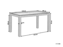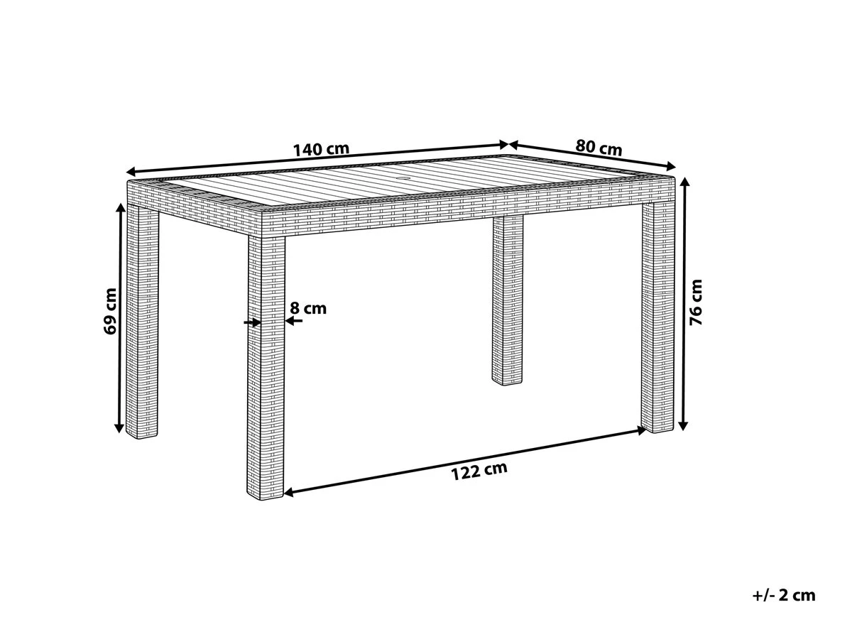 Mesa de exterior para 6 personas. Disfruta de una tarde de verano al aire libre, acompañado por tus amigos o familiares, con esta mesa de jardín para 6 personas. Está fabricada con material sintético resistente a condiciones climáticas adversas y de fácil mantenimiento. La mesa luce bien en una terraza moderna ambientada con plantas y velas aromáticas. Detalles: Tipo de Producto: Mesa de jardín Estilo: Moderno Color: Gris Tonalidad: Grafito Tipo de material: Material sintético Material principal: Material sintético Material de las patas: Material sintético Material de la superficie: Material sintético Forma: Rectangular Dimensiones: Ancho: 80 cm Longitud: 140 cm Altura: 76 cm Peso: 11 kg Capacidad de peso: 100 kg La oferta incluye: 1 x Mesa Ventajas: Perfecto para todo tipo de exterior, Material ligero y durable, Resiste a la intemperie y a todo tipo de clima, Resistencia UV, Mantenimiento sencillo Información de montaje: Requiere montaje de las patas. 5-15 min. Texto de resistencia: Gracias al acabado especial, la superficie del producto es resistente a la oxidación. Esto significa que se puede utilizar en exteriores. Cuando el producto no esté en uso, se recomienda cubrirlo con una cubierta o colocarlo en un lugar seco. Resistencia: Intemperie Consejos de mantenimiento: Material sintético: 1.Limpiar con un limpiador a base de jabón suave y un paño suave, 2.El material es extremadamente resistente a la intemperie. Sin embargo, se recomienda utilizar una funda protectora para la temporada de invierno o, si es posible, guardar los muebles en un lugar fresco y seco 3.Manténgalo alejado de fuentes de calor, como parrilla o fuego, ya que las chispas pueden causar daños graves. No coloque utensilios calientes directamente sobre la superficie