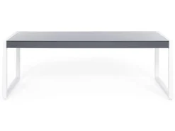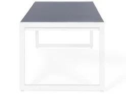 Mesa de exterior. Añade a tu zona exterior esta mesa de jardín de diseño moderno. El tablero de fibra está fabricado con vidrio templado de acabado brillante. Tiene una capacidad de 6 personas. El diseño llamativo con formas simples aporta un toque de distinción. Detalles: Tipo de Producto: Mesa de jardín Estilo: Moderno Color: Gris Tonalidad: Blanco crema Tipo de material: Metal Material principal: Aluminio Material adicional: Vidrio Material de la superficie: Vidrio Forma: Rectangular Acabado: Revestimiento en polvo Dimensiones: Ancho: 90 cm Longitud: 210 cm Altura: 74 cm Peso: 43 kg Capacidad de peso: 150 kg La oferta incluye: 1 x Mesa Ventajas: Perfecto para cenar en grupos más grandes, Diseño tradicional con un toque moderno, Resistencia UV, Robusto marco resistente a la corrosión, Ideal para uso al aire libre Información de montaje: Requiere montaje parcial. 20-40 min. Texto de resistencia: El producto es resistente al agua, lo que significa que no se dañará expuesto a la lluvia o en contacto con otros líquidos. Puede dejarlo al aire libre incluso durante fuertes lluvias o humedad. Durante la temporada de invierno es recomendable almacenar el producto en el interior o bajo una cubierta impermeable. Resistencia: Agua Consejos de mantenimiento: Aluminio: 1.Fuera de temporada, utilice una funda protectora o guarde los muebles en un lugar fresco y seco 2.Limpiar con agua jabonosa y detergentes suaves. Quitar el polvo con un paño suave. Poliéster: 1.Limpiar con un limpiador a base de jabón suave y un paño suave, 2.El material es extremadamente resistente a la intemperie. Sin embargo, se recomienda utilizar una funda protectora para la temporada de invierno o, si es posible, guardar los muebles en un lugar fresco y seco 3.Manténgalo alejado de fuentes de calor, como parrilla o fuego, ya que las chispas pueden causar daños graves. No coloque utensilios calientes directamente sobre la superficie