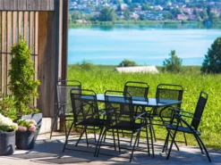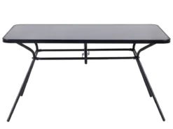 Moderna mesa de jardín rectangular en acero. Esta práctica mesa de exterior de forma rectangular, resaltará en tu jardín o balcón. Elaborada de materiales de la más alta calidad, la pieza cuenta con una sólida estructura en metal y con un tablero en vidrio templado. El mueble será la elección ideal para todo tipo de exterior. Gracias al revestimiento en polvo antioxidante, la mesa resiste a la intemperie, garantizándole una larga vida útil. Detalles: Tipo de Producto: Mesa de jardín Estilo: Moderno Color: Negro Tipo de material: Acero Material principal: Acero Material adicional: Vidrio templado Material de las patas: Acero Material de la superficie: Vidrio Forma: Rectangular Acabado: Brillante Dimensiones: Ancho: 80 cm Longitud: 140 cm Altura: 73 cm Peso: 23 kg Capacidad de peso: 75 kg La oferta incluye: 1 x Mesa Ventajas: Perfecto para todo tipo de exterior, Apariencia elegante, Gran durabilidad, Alta calidad, Fabricación sólida y precisa Información de montaje: Requiere montaje completo. 20-40 min. Texto de resistencia: Gracias a su resistencia al agua, puedes utilizar el producto al aire libre y dejarlo a la intemperie durante lluvias ligeras. Si no es posible guardarlo en un lugar cerrado y protegido, recomendamos utilizar una funda protectora. La exposición prolongada a la humedad puede provocar daños en el mueble. Resistencia: Agua ligera / humedad Consejos de mantenimiento: Acero: 1.Para garantizar la protección contra la corrosión, evite los limpiadores alcalinos o ácidos. Después de limpiar, secar bien 2.Quite las tapas protectoras con regularidad para que salga todo el líquido, déjelas secar y utilice un spray anticorrosión si es necesario 3.Limpiar con detergentes suaves 4.Los muebles de acero y sus elementos no deben exponerse al agua. De lo contrario, existe la posibilidad de que el agua oxidada salga de las tuberías del marco 5.Cuando no estén en uso, los muebles deben guardarse en el interior o bajo una cubierta protectora 6.Para aumentar la durabilidad del artículo, manténgalo seco y recuerde la limpieza regular 7.Cualquier daño a la capa de pintura exterior debe protegerse de la humedad. Vidrio templado: 1.Limpiar con un detergente suave o acondicionador de vidrio con un paño suave. Secar después de limpiar 2.Secar después de la lluvia o la nieve. Durante el invierno, utilice una funda protectora o guarde los muebles en el interior 3.Para evitar rayones, no use un limpiador cremoso.