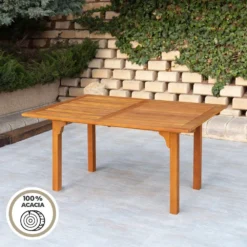 - Mesa de jardín extensible color madera natural con forma rectangular y capacidad para 6-8 comensales Aktive Garden