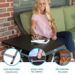 - El tablero se abate y sus patas se pliegan para facilitar su transporte, peso ligero de 5 kg