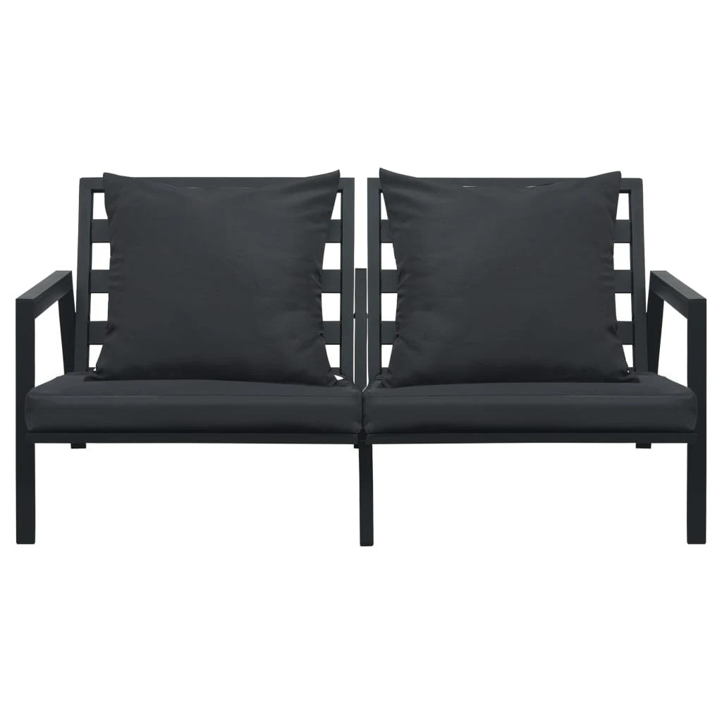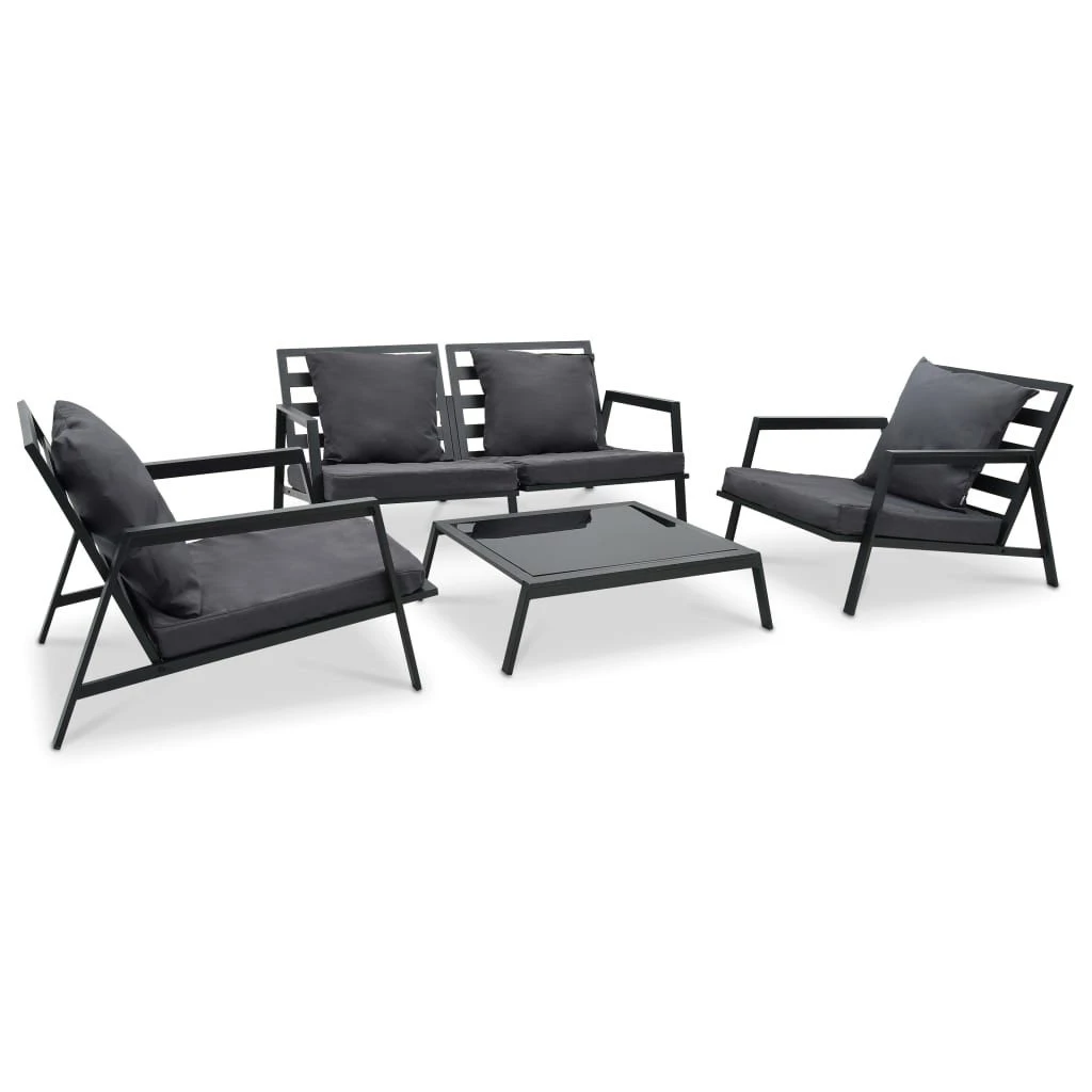 Este conjunto de sofás de aluminio combina estilo y funcionalidad y está destinado a ser el foco de atención de tu jardín o patio. El juego de salón está construido para un uso duradero y garantiza una gran resistencia, gracias a la estructura de aluminio con recubrimiento en polvo. El asiento acolchado de felpa y los cojines del respaldo brindan comodidad durante todo el día. La funda del cojín de asiento es extraíble para facilitar el lavado. El conjunto de sofás es fácil de montar. Color: Gris oscuro y negroMaterial: Aluminio con recubrimiento en polvo, tela (100% poliéster, vidrioDimensiones del sofá de 2 plazas: 151 x 96 x 70 cm (ancho x profundo x altoDimensiones del sofá individual: 78,5 x 96 x 70 cm (ancho x profundo x altoDimensiones de la mesa de centro: 90 x 75 x 25 cm (largo x ancho x altoResistente a la intemperieDiseño de listonesRequiere montaje: SíLa entrega incluye:1 x Sofá de 2 plazas2 x Sofás individuales1 x Mesa de centro4 x Cojines de asiento4 x Cojines de respaldo