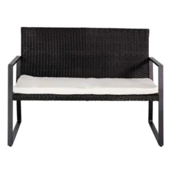 Podrás relajarte en la zona exterior de tu hogar mientras te tomas unas copas con este conjunto de ratán sintético de la marca Aktive Garden. Está compuesto por 1 sofá de 2 plazas, 2 sillones y una mesita baja de centro con tablero de cristal para aumentar su resistencia y facilitar su limpieza. Viene con 3 cojines de poliéster en color blanco para hacer mucho más confortables los asientos. Todas las piezas están fabricadas en ratán sintético con estructura de acero con revestimiento en polvo. Podrás colocarlo en jardines, terrazas, porches o azoteas gracias a que resiste muy bien la intemperie. Gracias a su diseño elegante y minimalista combinará a la perfección junto a cualquier estilo decorativo.