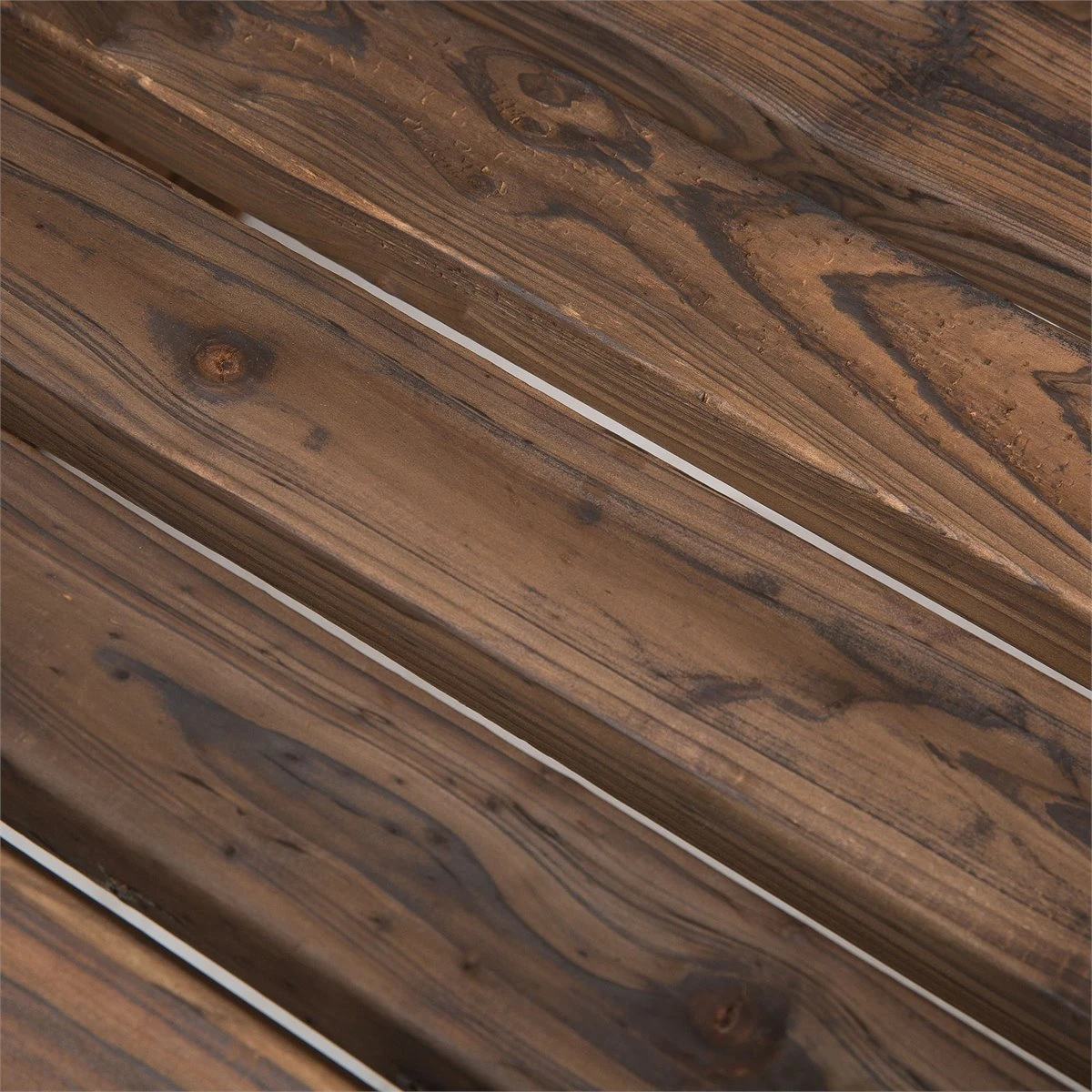 - – BANCO RÚSTICO: Banco de estilo rústico con aspecto envejecido gracias al tratamiento al fuego aplicado. Ideal para agregar belleza y elegancia a tu patio, jardín, terraza o cualquier otro espacio exterior – APOYABRAZOS EN FORMA DE RUEDA: Los laterales de este banco en forma de rueda, aparte de darle un toque rústico al ambiente, hacen la función de apoyabrazos gracias a su diseño redondeado – MADERA DE ABETO ENVEJECIDA: Banco hecho de madera de abeto maciza con tratamiento Flame Shield, que es un tratamiento al fuego que, aparte de dar un bonito aspecto envejecido, protege del viento y otras inclemencias del tiempo – TRANSPIRABLE Y RESISTENTE: Diseñado con un gran respaldo y asiento de listones, es un banco con buena traspiración que proporciona el lugar ideal para descansar. Su madera tratada ofrece gran resistencia a la intemperie alargando así su vida útil – MEDIDAS TOTALES: 108x66x95 cm (LxANxAL; Medidas del asiento: 98x48x2,3 cm (LxANxAL; Altura del asiento: 43 cm; Peso máximo soportado: 250 kg
