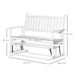 - – BALANCÍN BIPLAZA PARA EXTERIOR: Resistente a la intemperie es ideal para tu jardín, terraza o patio. Dondequiera que la instales y coloques, dará un toque cómodo, elegante y a la vez divertido – SOPORTE CÓMODO: Esta silla mecedora de jardín ofrece un asiento cómodo gracias a su respaldo alto, ligeramente curvo y con la parte inferior abierta y, un asiento amplio con apoyabrazos – RESISTENTE Y ESTABLE: Este banco de 2 plazas de jardín está fabricado con madera de álamo con revestimiento para garantizar una gran resistencia a la intemperie y estabilidad. El asiento de listones permite un fácil drenaje y secado rápido si llueve – ASIENTO PARA 2 PERSONAS: Este banco balanceante de jardín ofrece un cómodo asiento para que puedan sentarse dos personas a la vez. Genial para relajarse en compañía o solo – MEDIDAS TOTALES: 125×68,5×102 cm (LxANxAL. Peso máximo soportado: 250 kg