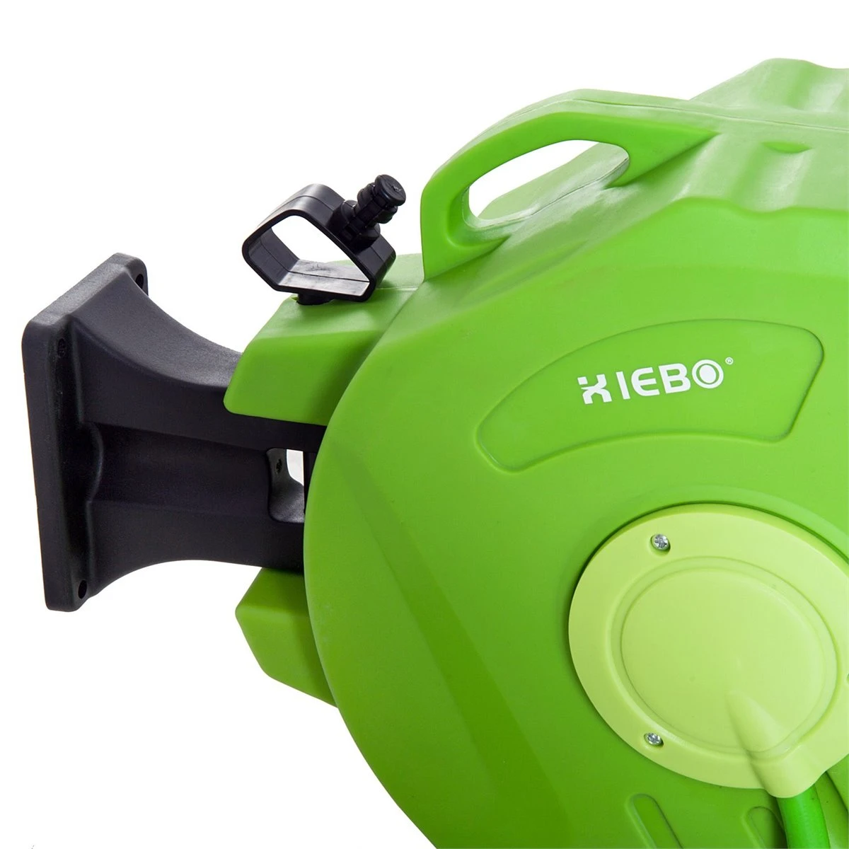 - – Multifuncional y Práctico: Carrete portamanguera muy útil, con 15m de manguera y 1.5m de conector para el grifo, ideal para el riego del jardín, la limpieza doméstica o incluso para limpiar el coche, la moto o la bicicleta. – Bloqueable: Permite bloquear la manguera para que quede fija en la longitud que se desee. – Soporte Giratorio 180º y Desmontable: Dispone de un ángulo de rotación de 180° que permite ampliar la cobertura de riego. Además, gracias a su estructura giratoria nos permite ahorrar espacio ubicándola en horizontal a la pared. También se puede desmontar fácilmente. – Roll-up Automático: Se enrolla automáticamente de forma ordenada evitando nudos y facilitando su uso y su futura extracción. Queda guardada de forma compacta sin que ocupe espacio. – Alta Calidad: Con una estructura de PP de alta calidad y una manguera de PVC. El soporte de la pared es estable y resistente para que se pueda usar con toda seguridad.