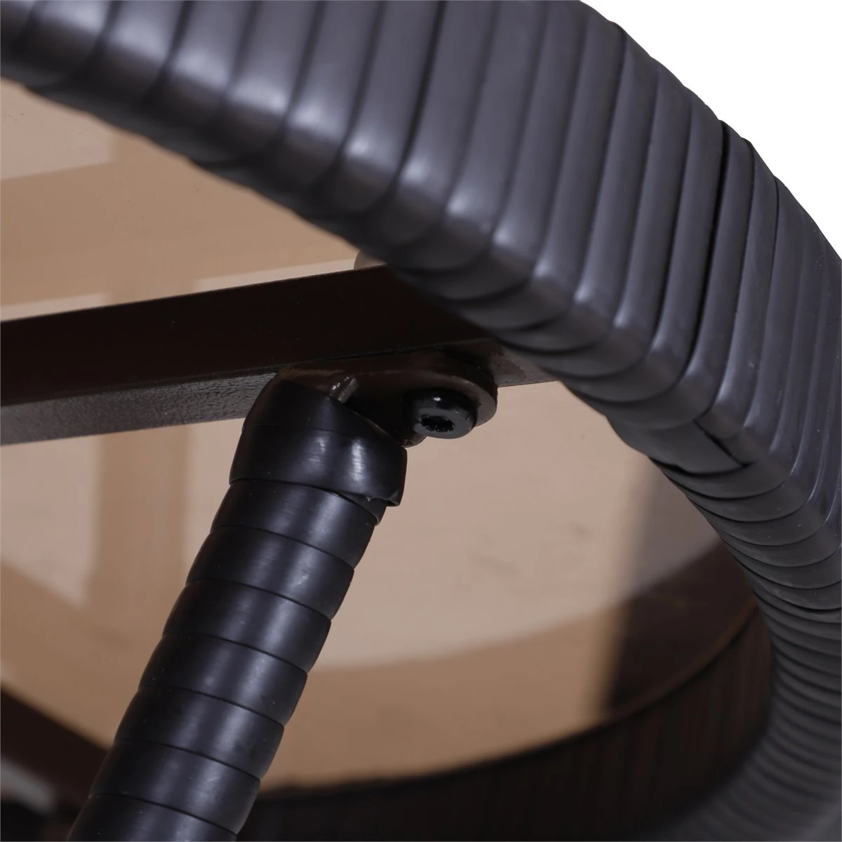 - – Mesa redonda con encimera de vidrio templado y un estante inferior que a la vez aporta mayor firmeza y estabilidad