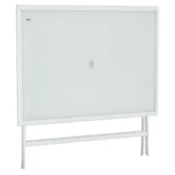 - – DISEÑO COMPACTO: Esta mesa de comedor exterior tiene un diseño plegable por lo que es ideal para facilitar su transporte y almacenaje cuando no vayas a usarla. No requiere montaje, tan solo tendrás que desplegarla y ya estará lista para usar – MESA CON ORIFICIO PARA SOMBRILLA: Esta mesa rectangular de exterior tiene un agujero en el centro para poder instalar un parasol con mástil de diámetro de 38 mm y 48 mm. Para que puedas disfrutar de una comida al aire libre sin que te molesten los rayos directos del sol – ENCIMERA DE VIDRIO TEMPLADO: Esta mesa de picnic cuenta con una resistente encimera de vidrio templado de 5 mm de grosor. Esta masa de balcón añadirá un toque de elegancia allá donde la coloques. Además, es fácil de limpiar con un paño húmedo – ESTRUCTURA RESISTENTE: Hecha con un marco de metal resistente con recubrimiento en polvo, para garantizar una buena resistencia a la intemperie y a la oxidación. Cuenta con almohadillas protectoras antideslizantes en las patas para mayor estabilidad y adherencia al suelo, y para no rayarlo – MEDIDAS TOTALES: 110x70x70 cm (LxANxAL. Medidas plegadas: 110x97x7 cm (LxANxAL. Peso máximo soportado: 30 kg