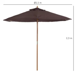 - – VERSÁTIL: Ideal para usar en tu jardín, terraza, patio o cualquier otro espacio al aire libre. Proporciona una zona sombrada donde puedes poner tus tumbonas de jardín, o un conjunto de mesa y sillas, para comer en familia o con los amigos – SOMBRILLA CON POSTE DESMONTABLE: Sombrilla con resistente estructura de madera de estilo clásico y actual, con 6 varillas de madera de bambú que sujetan firmemente la cubierta de poliéster. El poste de 38 mm de diámetro es desmontable en 2 partes y tiene una terminación decorativa en la parte superior – TECHO CON VENTILACIÓN: Esta sombrilla cuenta con una cubierta de doble techo, lo que proporciona mayor estabilidad los días de viento, mejor ventilación y también ayuda a disipar el calor – APERTURA Y CIERRE CON POLEA: Sombrilla muy fácil de utilizar gracias a su mecanismo de apertura y cierre mediante sistema de poleas. Tan solo tendrás que tirar del cordón hasta que llegues a la posición para fijarla con el pasador – MEDIDAS TOTALES: Ø250×230 cm (DxAL. Diámetro del mástil: Ø38 mm. NOTA: Esta sombrilla NO incluye base
