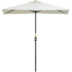 ¿Dispones de un espacio pequeño o quieres una sombrilla a ras de pared y no encuentras ninguna que te encaje? Estás de suerte, Outsunny te presenta esta sombrilla semicircular ideal para estas ocasiones. Con estructura resistente de metal con recubrimiento en polvo y cubierta de poliéster resistente a la intemperie y rayos UV, se abre y cierra fácilmente mediante una manivela y la podrás colocar en cualquier espacio. Características – Cubierta de poliéster resistente a los rayos UV para una mayor protección solar en el exterior – Con estructura metálica lacada con pintura con recubrimiento en polvo para mayor resistencia a la intemperie y a la corrosión – Fácil de abrir y cerrar mediante una manivela – Su diseño semicircular es ideal para colocar a ras de una pared o puerta de cristal – Fácil de limpiar y mantener – Ideal para cualquier espacio exterior como un balcón, patio, terraza, etc. Especificaciones – Color: beige – Material: metal, poliéster – Medidas totales: 230x130x245 cm (LxANxAL – Referencia: 84D-074BG