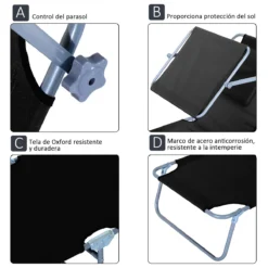 Esta tumbona plegable de Outsunny es ideal para tumbarse al sol en la playa, terraza, montaña, cerca de la piscina o llevártela al camping. Su respaldo se puede reclinar en 4 posiciones diferentes y dispone de un pequeño toldo desmontable con ángulo regulable, para que puedas proteger tu rostro de los rayos del sol. Su resistente estructura de metal es capaz de soportar hasta 120 kg. ¡Disfruta de un merecido descanso en tu jardín mientras lees tu libro favorito!