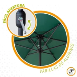 - Medidas: el diámetro del parasol es de 250 cm y la altura de 240 cm
