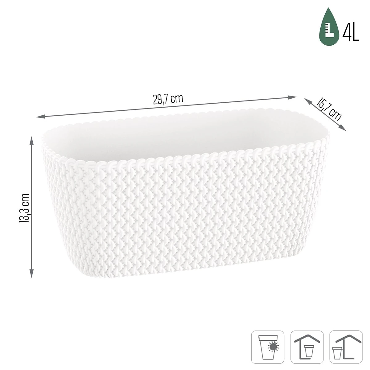 Jardinera Para Balcón De La Colección Splofy Case_x000D_Dimensiones: 297X145X133_x000D_Blanco