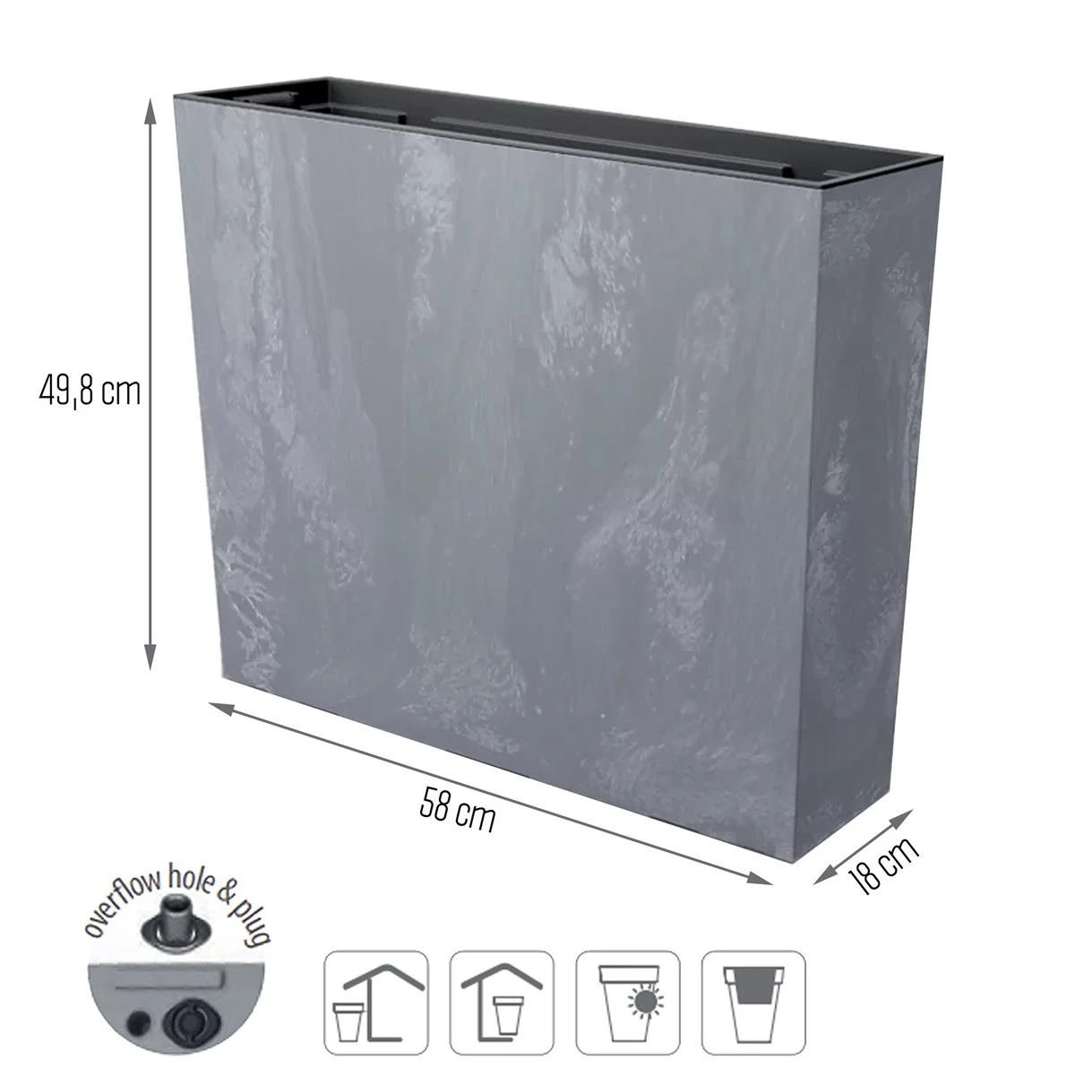 Jardinera Para Balcón De La Colección Urbi Case Beton Effect_x000D_Dimensiones: 580X180X498_x000D_Marengoexcelente Para Decoración En Interiores, Pero También Es Apta Para Ubicación En Exteriores. Perfecto Para Salones Domésticos, Terrazas, Jardines De Invierno O Patios, Fabricada En Plástico De Alta Calidad._x000D_Set 2 En 1: Macetero Que Incluye Un Depósito Interior Adaptado Que Reduce La Cantidad De Tierra Necesaria._x000D_Con Depósito
